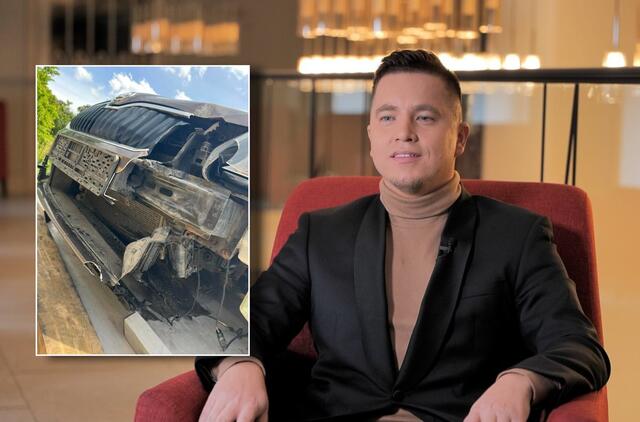 Laidų vedėjas savo „Facebook“ paskyroje pasidalijo nuotrauka, kurioje matyti stipriai apgadintas automobilis.