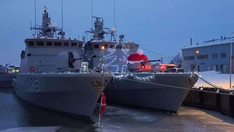 Kažkodėl visiems atrodo, kad kariškiai yra labai drausmingi ir nešvenčia jokių švenčių, lyg būtų ne žmonės, o robotai. Tai kad ne, jie turi ir puikų humoro jausmą, ir savo laivus padabina šventiškai. Manote, kad tik miesto simbolis burlaivis „Meridianas“ gali šventėms pasipuošti - vietoj burių išsikelti šviečiančią tuščiavidurę eglutę, ar bendrovės „Smiltynės perkėla“ keltai apsikabinėti šviečiančiomis girliandomis. Šiemet jie gal to ir nedaro, mat visiems liepta taupyti.