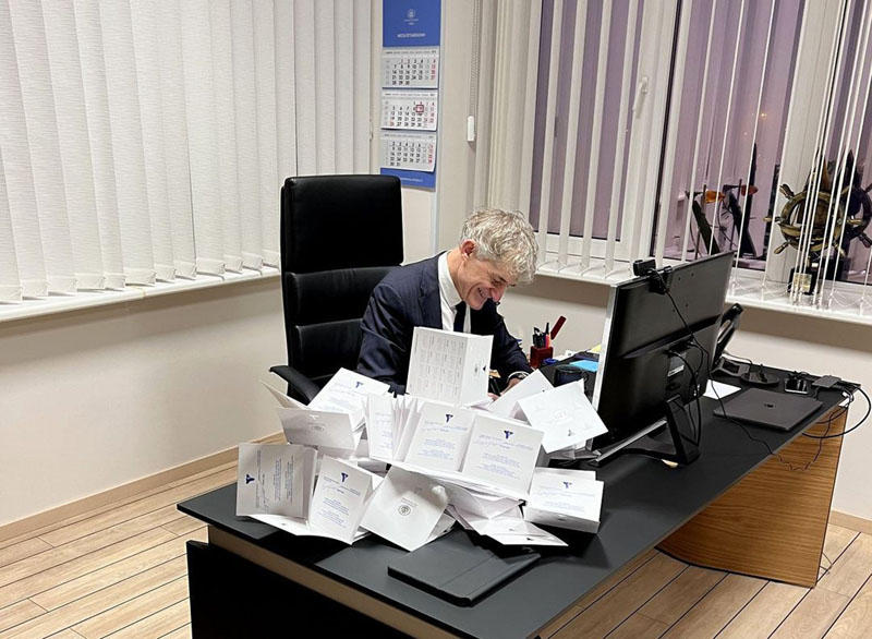 Spėkite - kas dieną naktį posėdžiauja ir atsakinėja į bendruomenės bei žurnalistų klausimus iki užkimimo? Žinoma, kad tai Uosto direkcijos generalinis direktorius Algis Latakas. Sulyso žmogus, neturi laiko nei pavalgyti, nei atsigerti. Tik triūsia ir triūsia. Kažkas, pavydėdamas jam tokio darbštumo, nufotografavo jį tarp popierių krūvų ir paleido feisbuke.