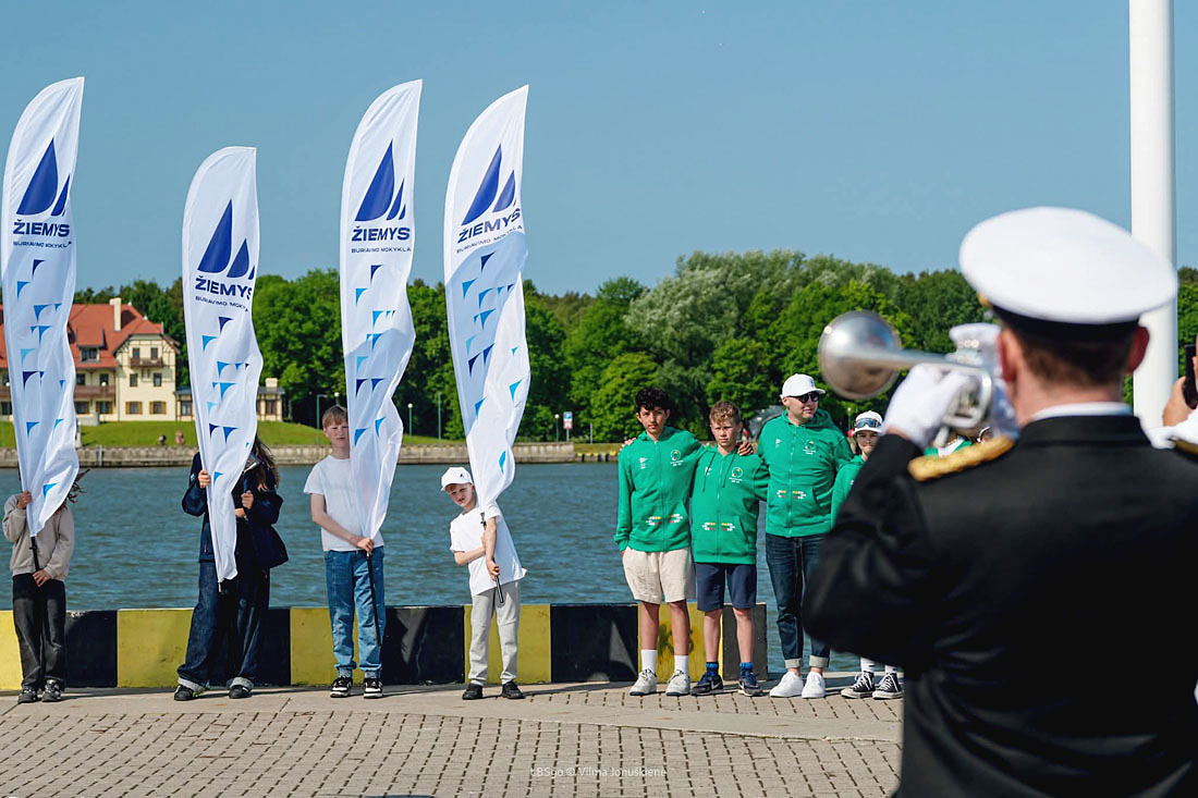 Uostamiestyje LBS 90 vėliavą kruizinių laivų terminale iškėlė patys jauniausi buriuotojai - Lietuvos „Optimist“ jachtų klasės rinktinės nariai.