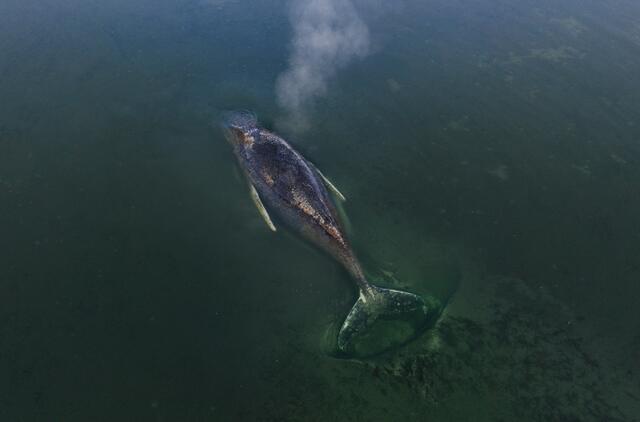 Baltijos jūros pakrantėje įstrigęs banginis išplaukė iš seklumos savo jėgomis