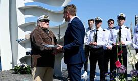 Iškilmingai prie „Albatroso“ paminklo už nuopelnus jūrinės kultūros srityje nemažai LJS padėkos raštų įteikta moksleiviams ir mokytojams.