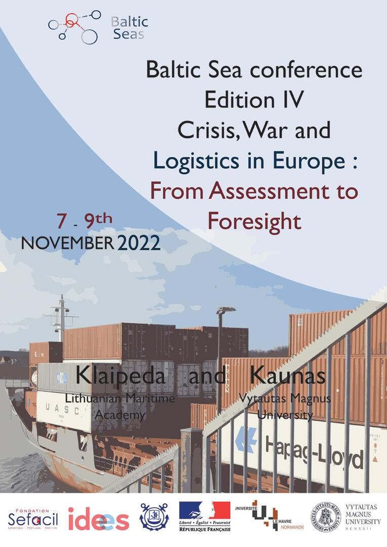 Konferencija Balticseas4: BALTIC SEAS CONFERENCE - EDITION IV - CRISIS, WAR AND LOGISTICS IN EUROPE: FROM ASSESSMENT TO FORESIGHT“ vyks lapkričio 7 ir 9 d. Klaipėdoje ir Kaune. Konferenciją organizuoja Lietuvos aukštoji jūreivystės mokykla kartu su VDU Politikos mokslų ir diplomatijos fakultetu ir Havro-Normandijos universitetu Prancūzijoje.