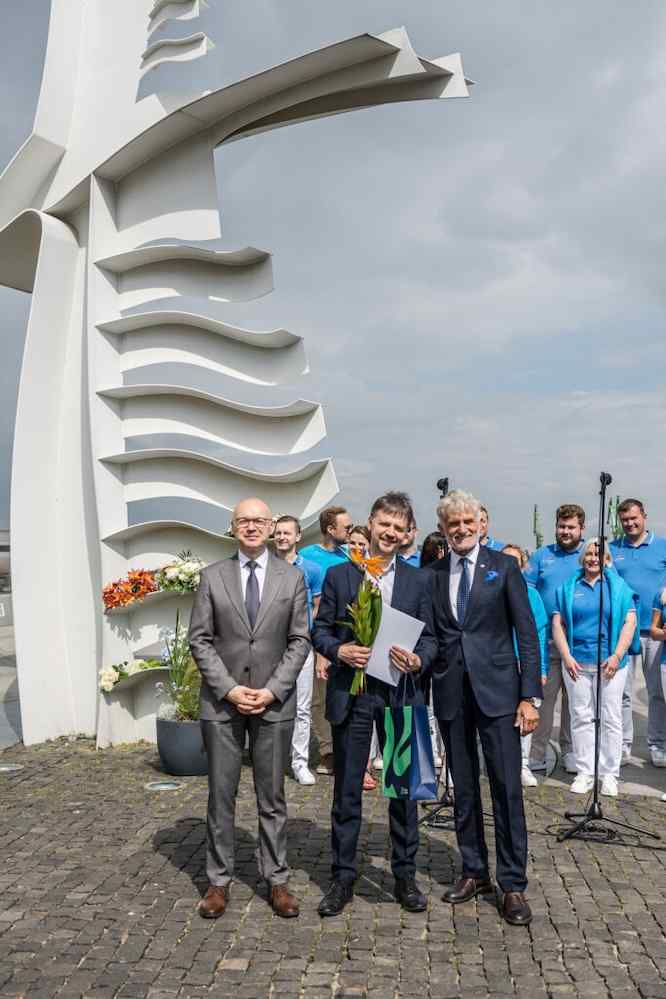 Prie paminklo „Albatrosas“ surengtos ceremonijos metu apdovanotuosius sveikino Lietuvos susisiekimo ministerijos, Klaipėdos uosto ir miesto vadovai.