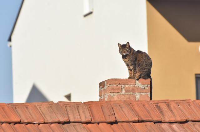 Ant slidaus stogo užsikabarojęs katinas išnaudojo vieną gyvybę: pasisekė, kad krosnis buvo neužkurta
