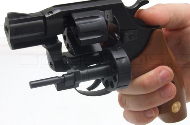 Vyras neberado mažos galios (iki 7,5 džiaulių) revolverio "Alfa 620", su būgne buvusiais devyniais šoviniais.