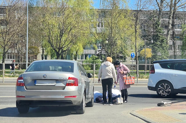 Prie ant gatvės grindinio parkritusios paspirtukininkės nuskubėjo mašinos vairuotoja ir pro šalį ėję praeiviai.
