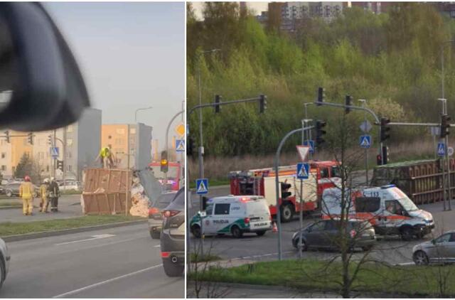 Avarijos tampa judraus prospekto kasdienybe: „fūra“ pametė konteinerį