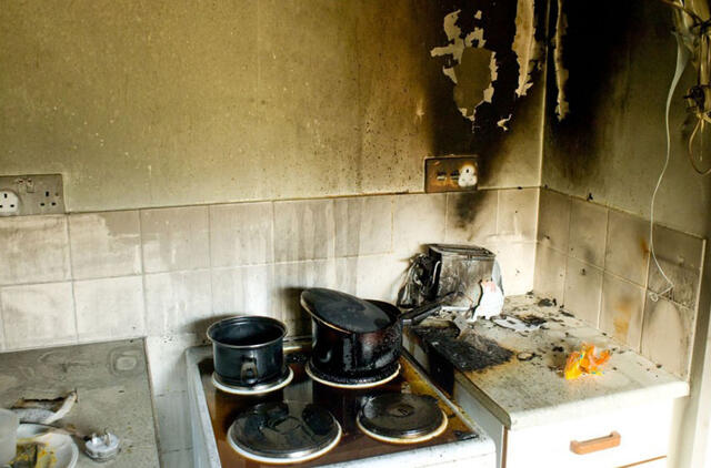 Apdegė dujinė viryklė, virtuvės baldai, aprūko buto sienos ir lubos.