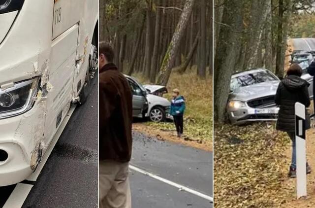 Didelė avarija Kuršių nerijos kelyje: autobusas, mašinos, medžiai ir stojęs eismas