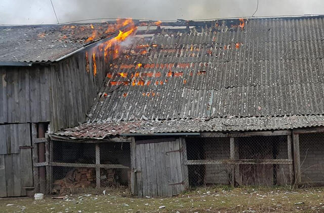 Atvykus į nelaimės vietą, ūkinis pastatas jau degė atvira liepsna.