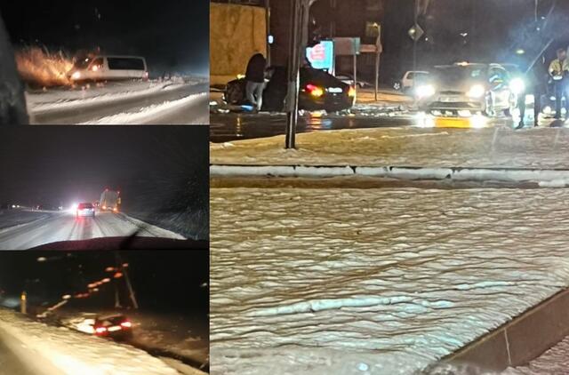 Kol vieni džiaugėsi ir puolė fotografuoti sniegu nuklotus medžius bei baltas pusnis, kiti stengėsi saugiai savo automobiliais pasiekti tikslą.