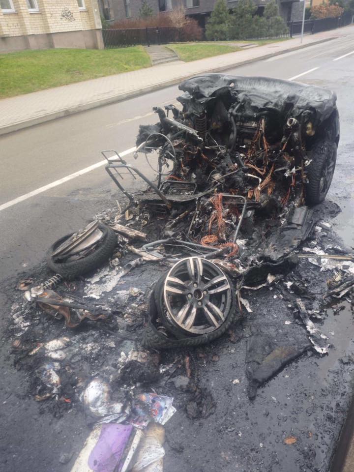 Iš „kibiriuko“ neliko nei ragų, nei nagų: ugniagesiai sušlavė gimnazisto mažojo automobilio likučius