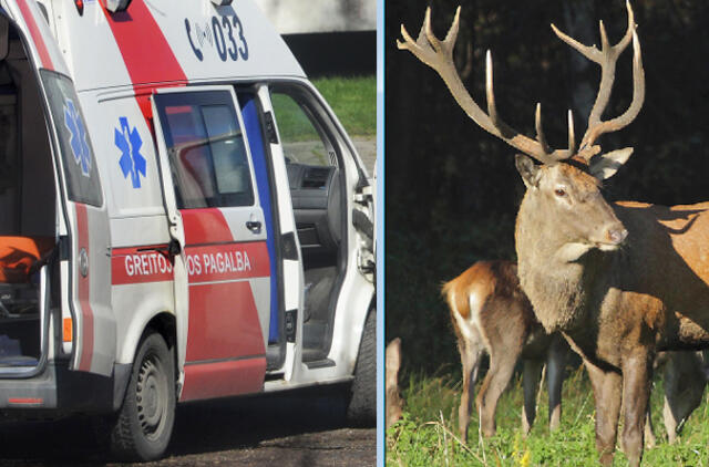 Iš tamsos išniręs elnias kelio neperbėgo: sužeistas į gyvūną atsitrenkusio automobilio keleivis
