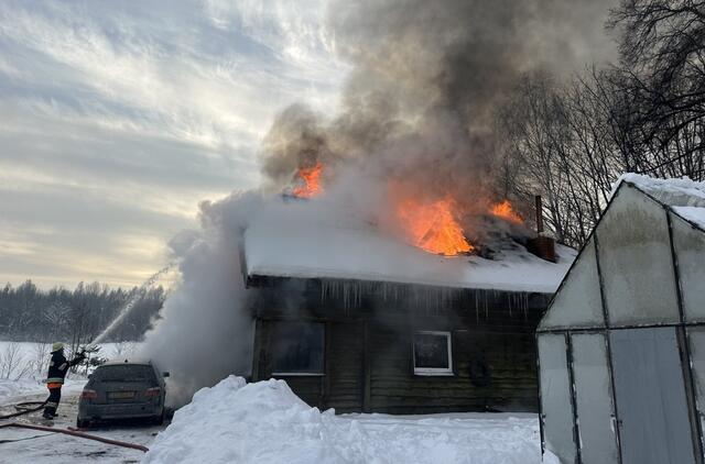 Pranešta, kad dega apie 77 kvadratinių metrų ploto gyvenamosios paskirties pastatas.