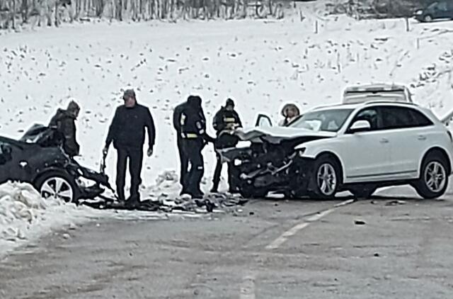 Teigiama, kad automobiliai vienas iki kitą rėžėsi kaktomuša.