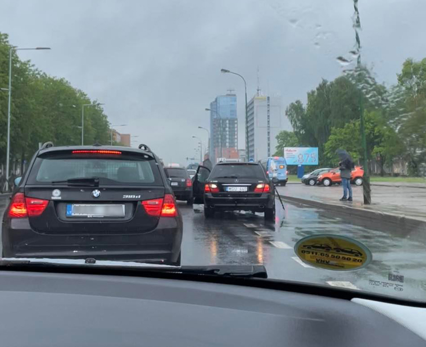 Laiku "Mercedes-Benz E200" sustoti nepadėjo ir dėl lietaus šlapia kelio danga.