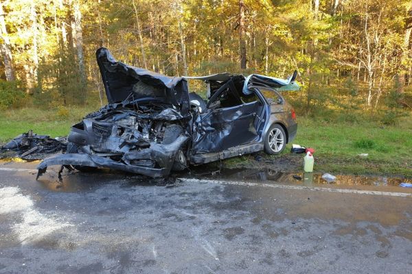 Išvažiavusi į priešingos krypties juostą, ji susidūrė su 3-ečios serijos BMW, kurį vairavo 43 moteris ir 57 metų vyro vairuojamu visureigiu „Volkswagen Touareg“.