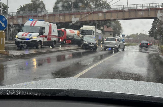 Šiandien, prapliupus liūčiai, Klaipėdoje įvyko nemenka avarija, kurioje sužalotas žmogus.