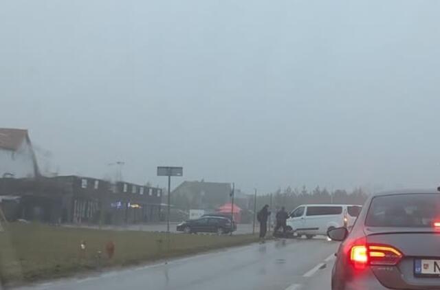 Nelygios jėgos: ūkanotą rytą motociklą ant šono paguldė mikroautobusas