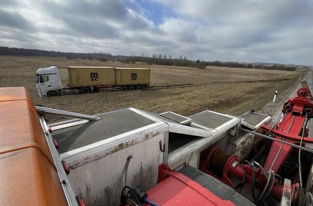 Nuo magistralės nulėkęs vilkikas sustojo laukuose: viskas galėjo baigtis ir kur kas blogiau