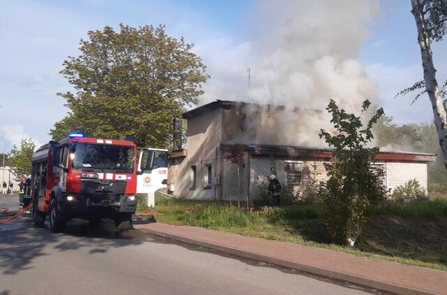 Atvykus į vietą, atvira liepsna degė dviejų aukštų apleistas "L" formos pastatas.