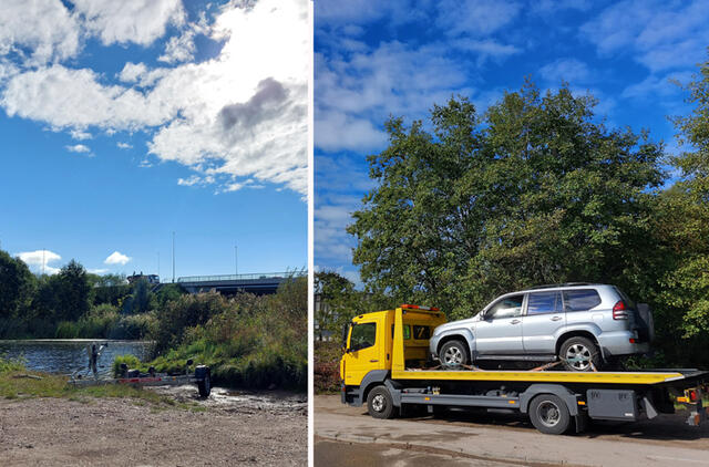 Į įvykio vietą atvyko ir aplinkosaugininkai, kurie patikrino ar į Danės upę iš nuskendusios "Toyota Land Cruiser" nepateko teršalai.