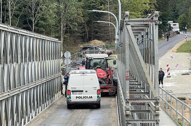 Transporto priemonėms kelią užtvėrė ant tilto užvažiavęs ir netikėtai sustojęs traktorius.