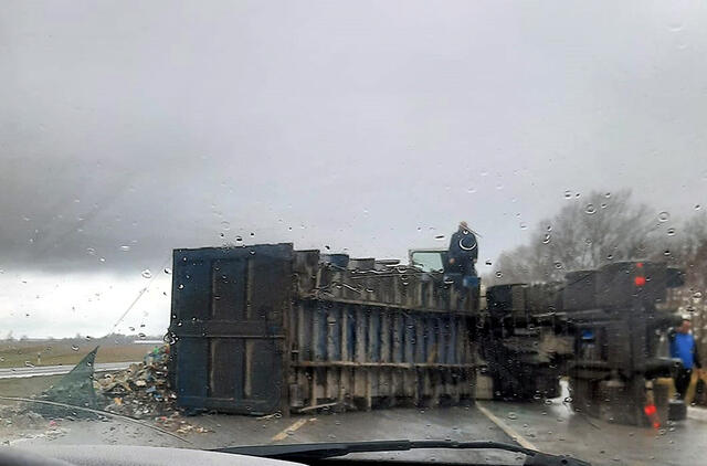 Pavojai kelyje Dituva-Klaipėda: lygsvaros neišlaikė šiukliavežė