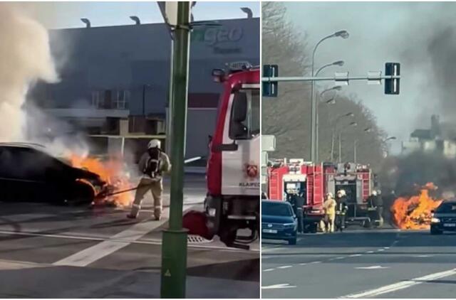 Gaisrininkai automobilį patraukė į šoną, kad netrukdytų eismui. Taip pat nuvalė važiuojamąją gatvės dangą, apie 6 kvadratinių metrų plote.