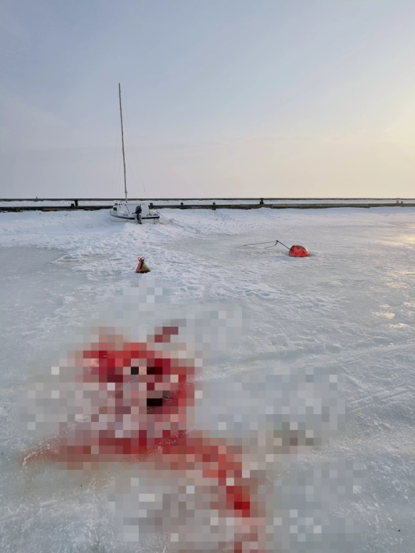 Po tragedijos Nidos uoste – krauju nudažytas ledas