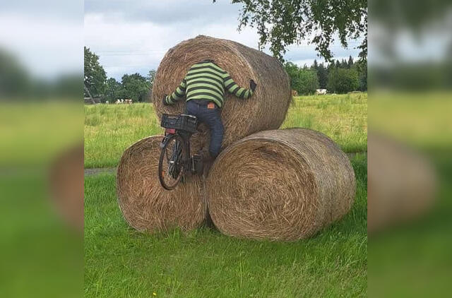 Visgi priėjus arčiau, viskas virto netikėtu atradimu: šieno rulone atsidūrė ne žmogus, o iškamša.