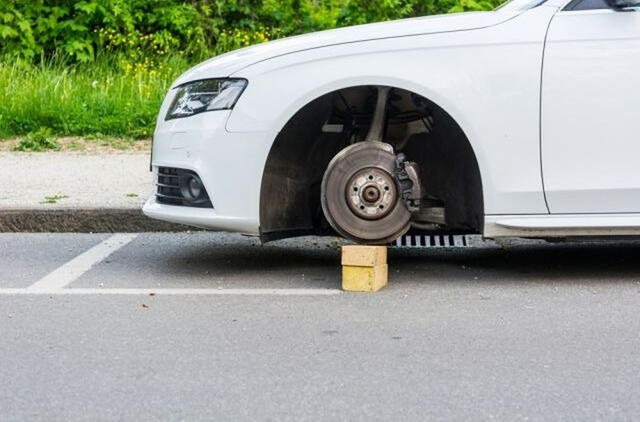 Priminimas apie skolą – nuo automobilio nuimtos padangos