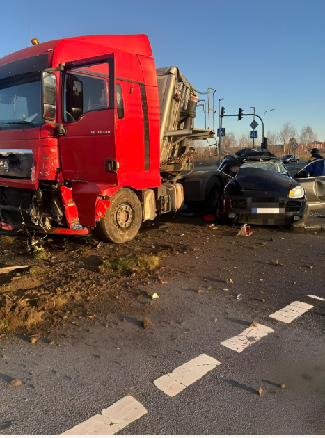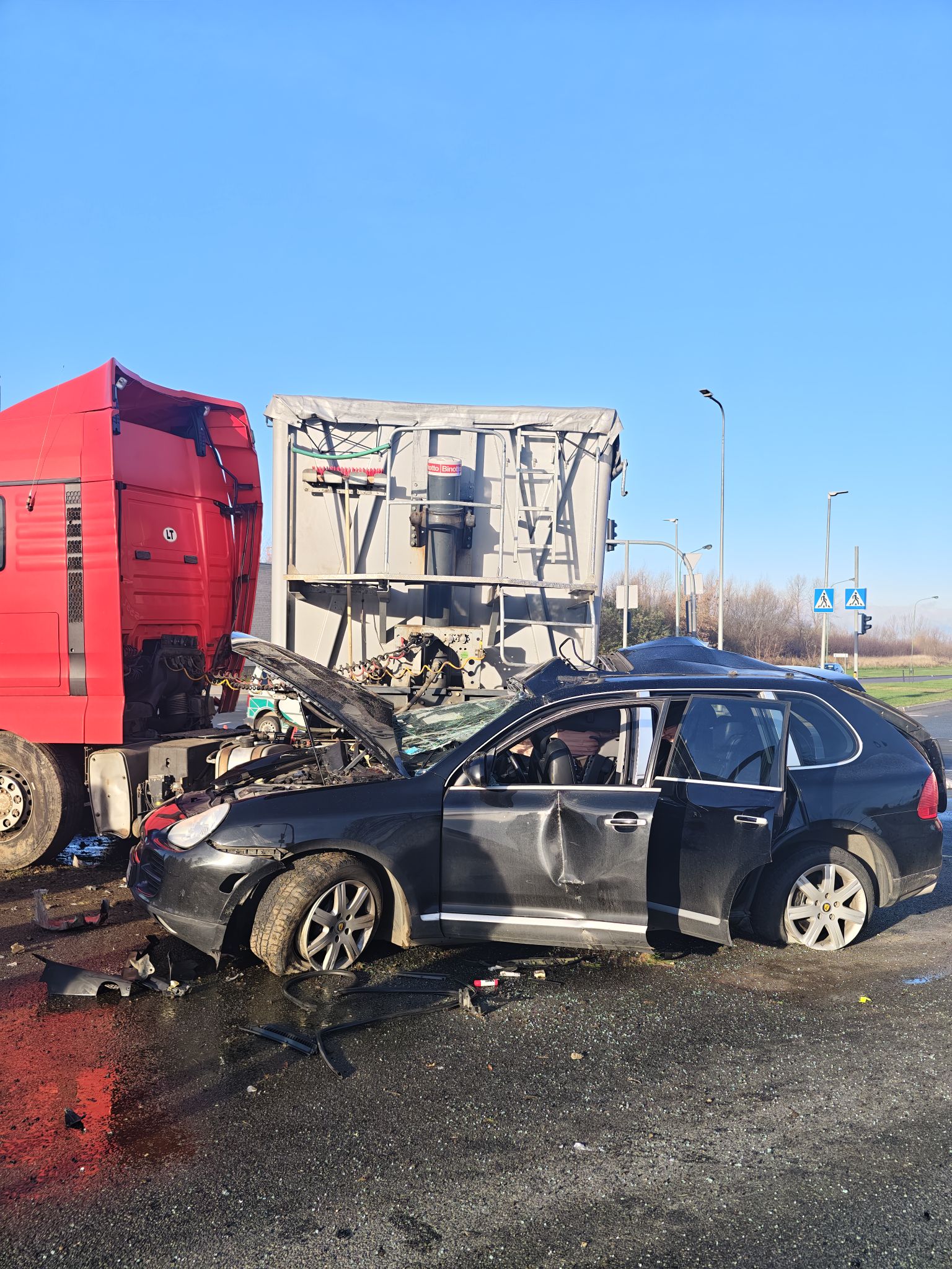 Joje susidūrė "Porsche Cayenne" ir vilkikas MAN su puspriekabe.