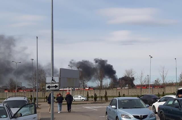 Šiaurinę miesto dalį užtemdė juodi dūmai: degė metaliniai garažai ir tarp jų sumestos padangos