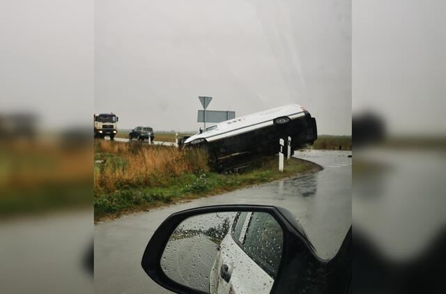 Siuntos gavėjus pasieks aplamdytos: krovininis autobusiukas virto ant šono