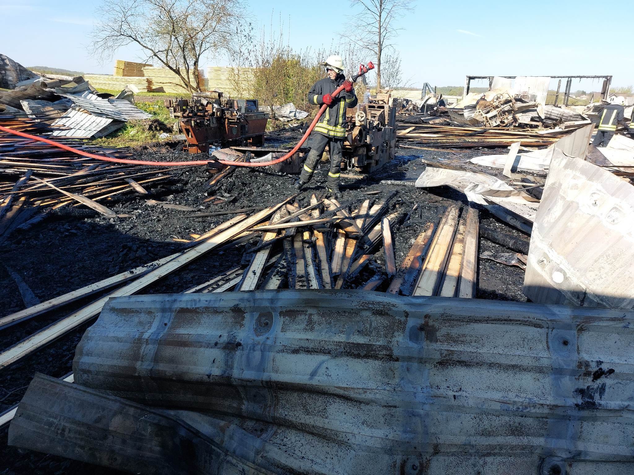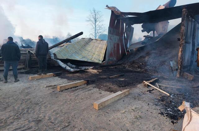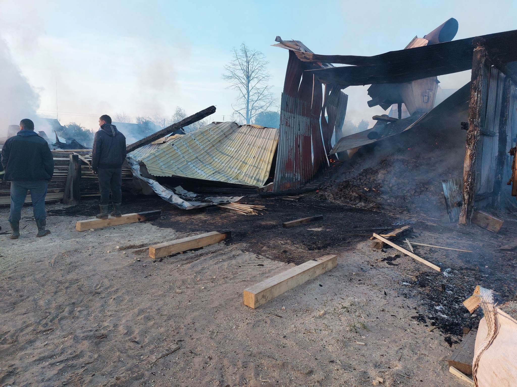 Per gaisrą išdegė ūkinio pastato vidus, sudegė 50 kubinių metrų medienos, viena tona dyzelinio kuro ir medžio apdirbimo staklės.