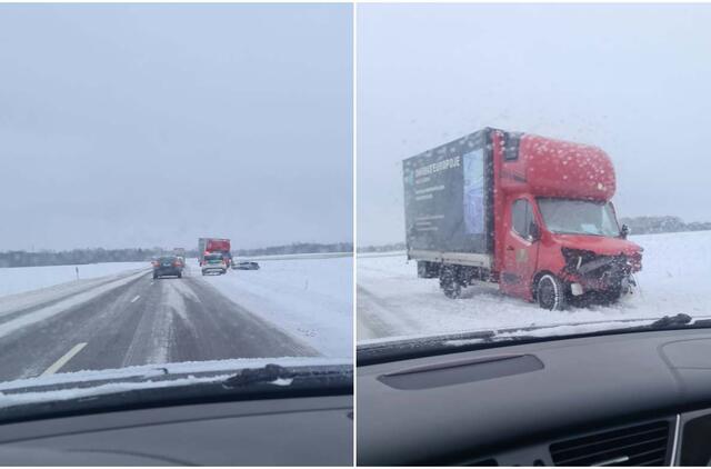 Slidūs Žemaitijos keliai: ugniagesiai vairuotoją iš sumaitotos kabinos vadavo laužtuvu