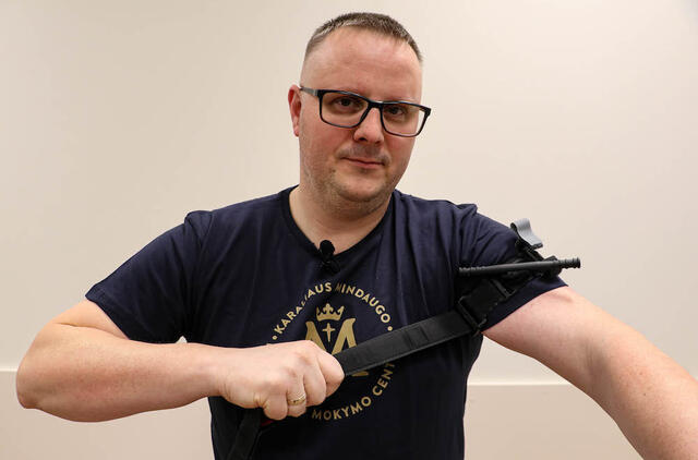 Specialistas vaizdo pamokoje demonstruoja, kaip turniketą reiktų naudoti taisyklingai: