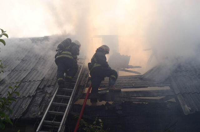 Atvykus į nelaimės vietą, beveik 70 kvadratinių metrų ploto individualus vieno aukšto su mansarda medinis gyvenamasis namas degė atvira liepsna.