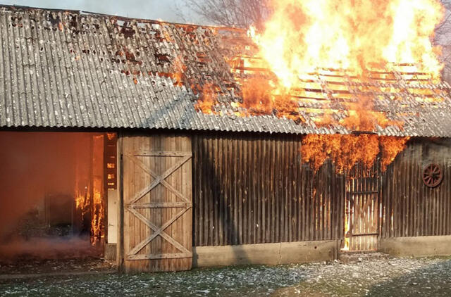Pranešta, jog dega ūkio paskirties pastatas.