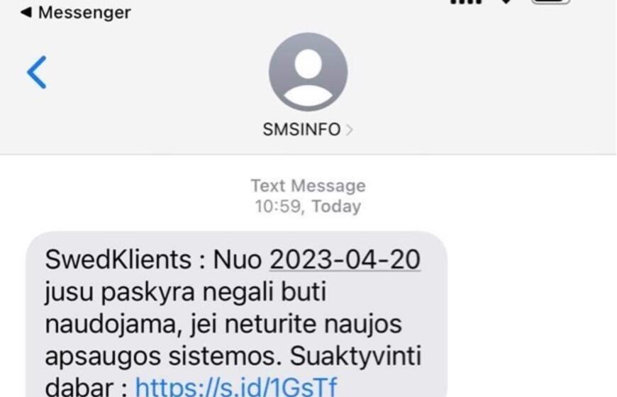 „Svarbu turėti galvoje, kad SMS žinutės dėl modernių technologijų gali atkeliauti iš bet kurio gavėjo, kokiu tik sugalvoja pasivadinti finansiniai sukčiai. Tai gali būti bet kurios valstybinės institucijos ar banko pavadinimas. O išmanusis telefonas tokias žinutes dar gali sugrupuoti ir priskirti prie tikro susirašinėjimo su institucija ar banku“, - įspėja D. Uosytė.