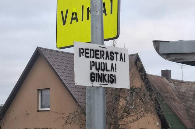 Tauragės pareigūnai aiškinasi apie homofobišką ženklą iškėlusį asmenį