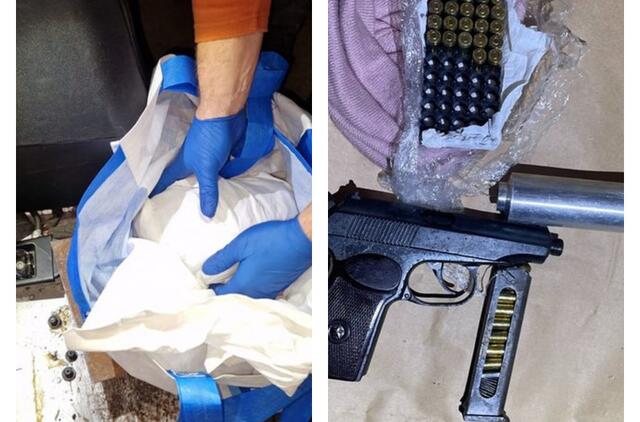 Marijampolės AVPK pareigūnų atliktų kratų metu kaltinamojo namuose buvo rasti ir paimti nedideli kiekiai narkotinių medžiagų – kokaino ir kanapių bei savadarbis šaunamasis ginklas su duslintuvu ir 24 vienetai šaudmenų.
