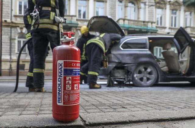 Automobilio savininkas gaisrą jau gesino milteliniu gesintuvu.