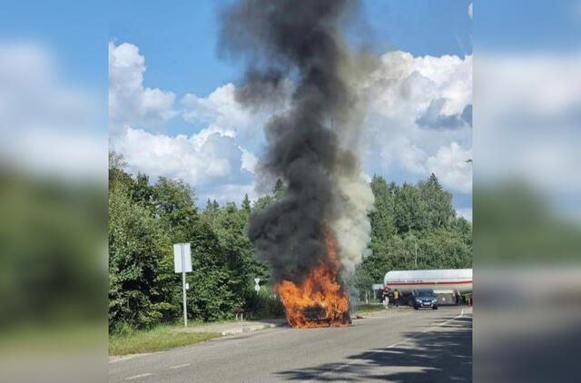 Išdegė automobilio variklio skyrius ir salonas, sudegė visas priekis.