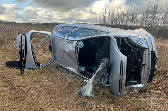 Po smūgio, "Citroen" nulėkė nuo magistralės važiuojamosios dalies, vertėsi ir gerokai aplamdytas sustojo ant dešinio šono.