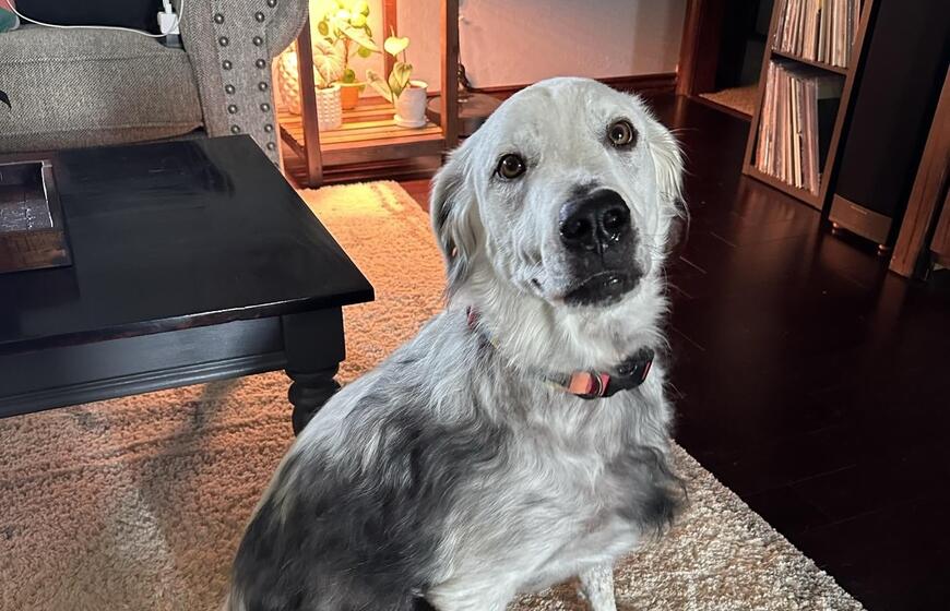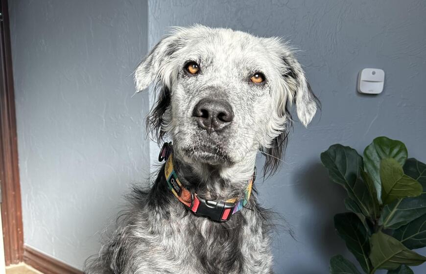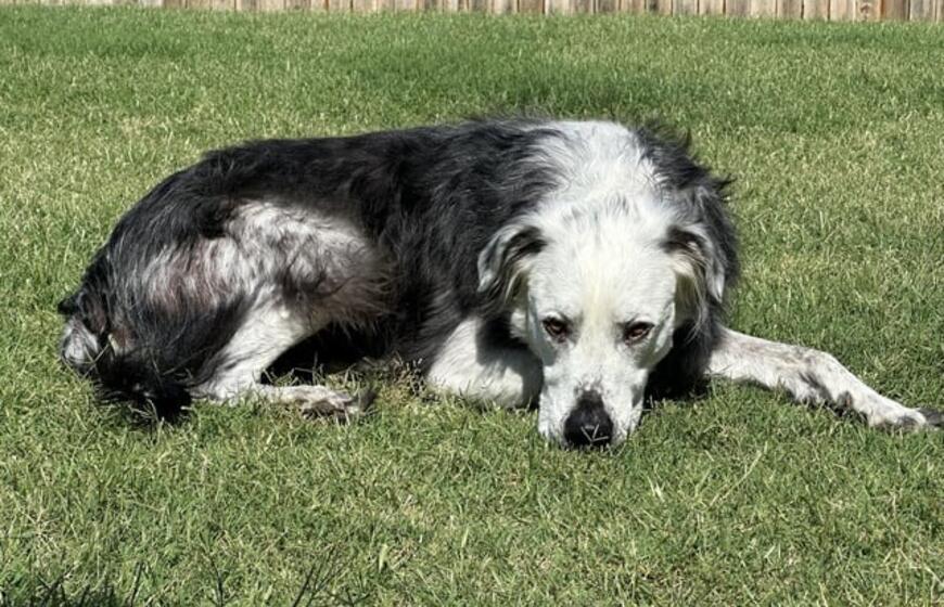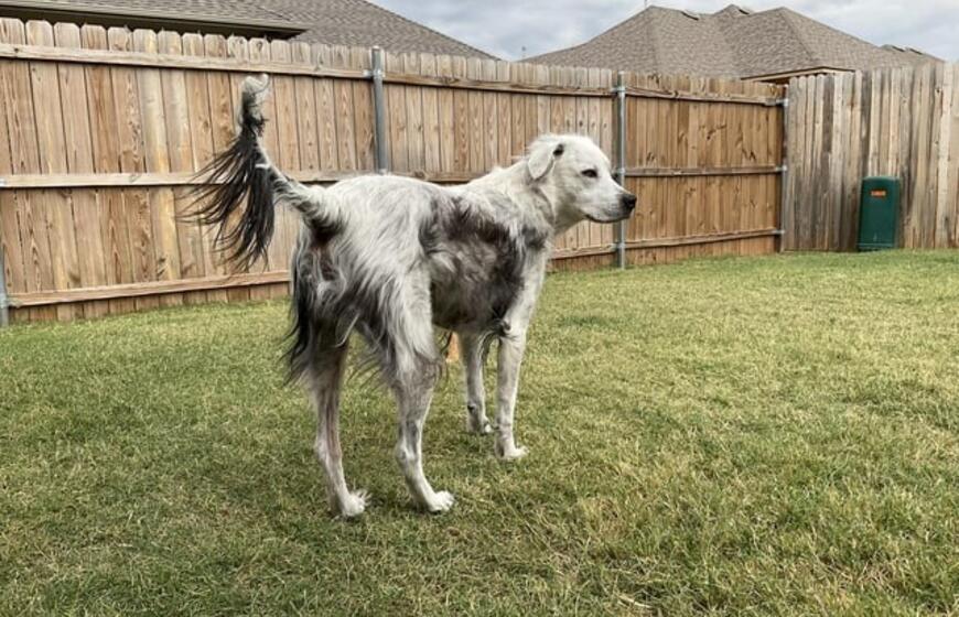 Juodas šuo dėl retos ligos tapo visiškai baltas