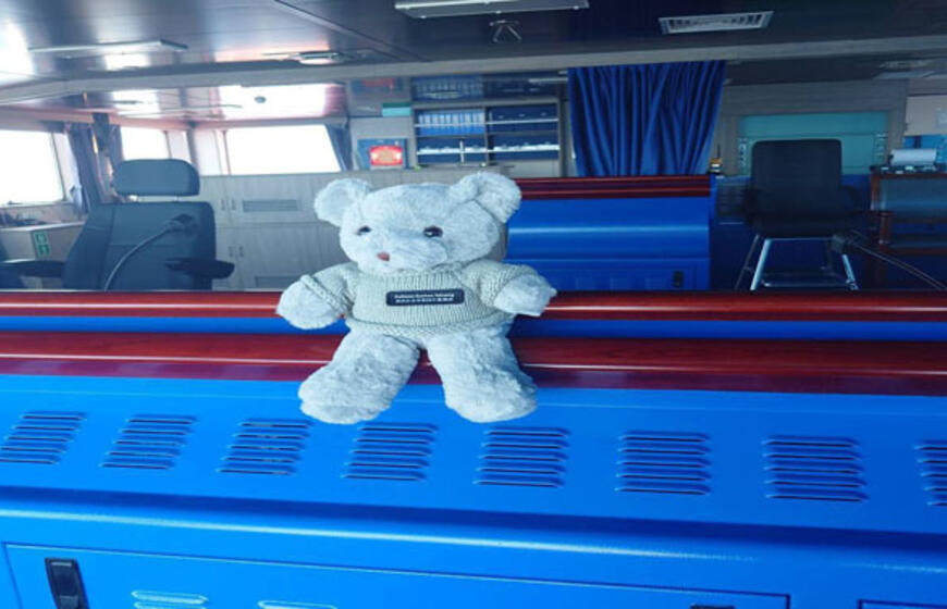 „Brandal“ navigaciniame tiltelyje - laivo talismanas meškiukas.