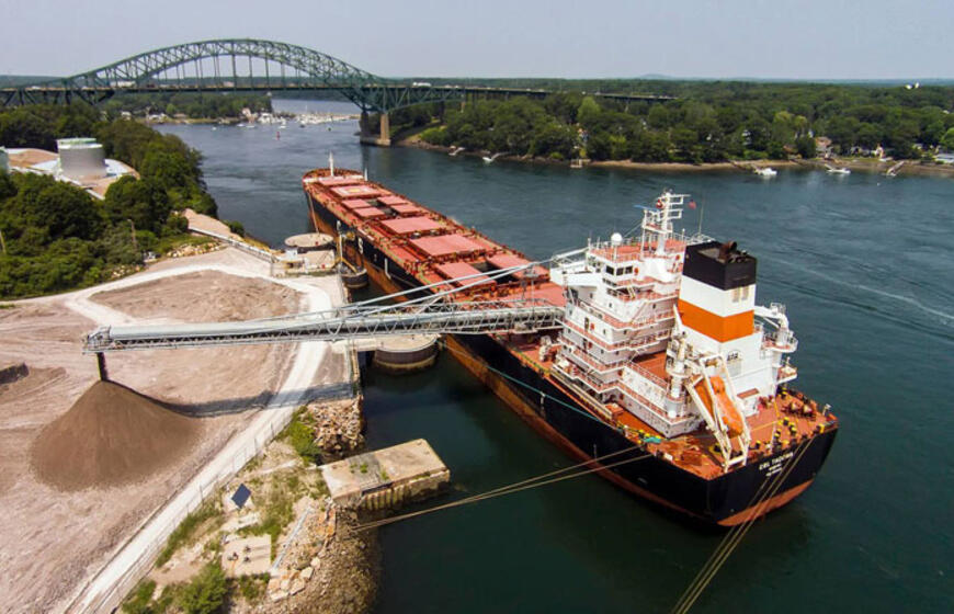 Krovinio iškrovimo procesas: laivas pats išsikrauna per 10 valandų.